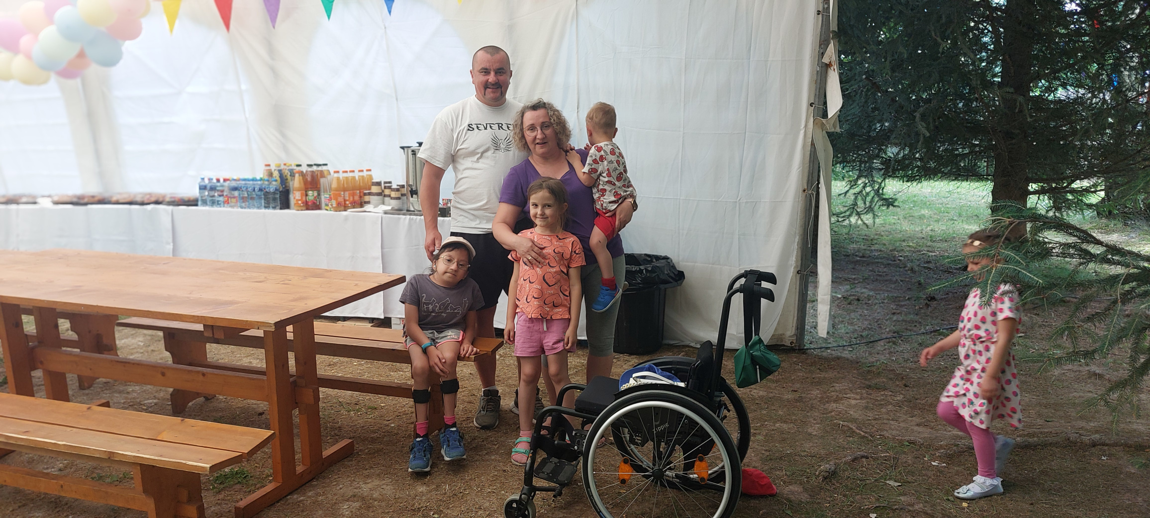 Były rozmowy przy stołach pod namiotem i ciche zwierzenia w cieniu drzew. Spacer, odpoczynek, śmiech i wzruszenie… co kto potrzebował, bo to był ich dzień – Dzień Rodzin Małopolskiego Hospicjum dla Dzieci. Okazja, żeby lepiej się poznać albo spotkać znowu. Czas bez pośpiechu, na bycie tu i teraz. Często spotykamy się w przestrzeni wirtualnej, bo wielu rodziców chętnie dzieli się chwilami codzienności. Regularnie spotykają się z nimi pielęgniarki, fizjoterapeuci i lekarze – bo przewlekle i nieuleczalnie chore dzieci otrzymują pomoc, opiekę i wsparcie w swoich domach. Każda okazja do tego, żeby wszyscy mogli się spotkać – jest niezwykle cenna. Podać sobie rękę, popatrzyć w oczy, uśmiechnąć się, zamienić kilka słów lub rozmawiać kilka godzin albo znaleźć porozumienie w ciszy. Wokół krzyki radości biegających dzieci – zdrowego rodzeństwa naszych podopiecznych, którzy z kolei mogli znaleźć ukojenie w kontakcie z przyrodą, otoczeni zielenią. Mamy nadzieję, że rodzice znaleźli chwilę dla siebie, że dla dzieci i młodzieży był to czas pełen atrakcji i powodów do uśmiechu. Po raz kolejny, w tej pełnej wyzwań rzeczywistości – udało się zorganizować wydarzenie, dające szansę na: oddech, rozmowę, radość.
