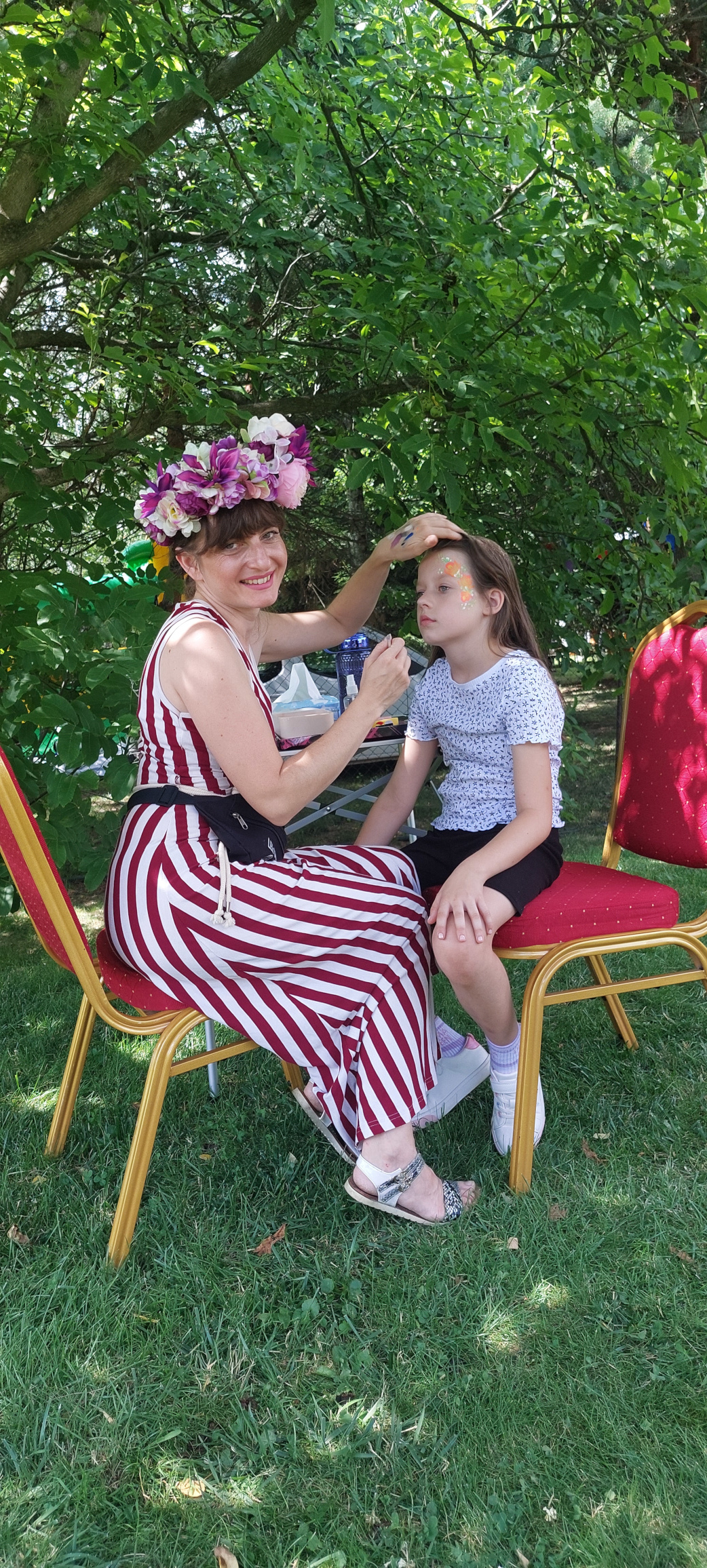 Dzieciństwo to także teatr, przebrania, udawanie ulubionych postaci… dlatego malowanie twarzy zawsze jest wielką atrakcją. Justyna Gryboś spełniała marzenia, tworząc na buziach małe dzieła sztuki. Motylek czy kotek – każdy szczegół oddany z sercem. Taki “tatuaż” na ręce nosiła też z dumą jedna z naszych pielęgniarek. Może ktoś zażyczył sobie Fiata 126p? Zresztą samochody z Wielkiej Wyprawy Maluchów można było podziwiać na żywo. Rozbrzmiewała muzyka, ale i ryk silników… Scythe Riders Kocmyrzów-Luborzyca nie tylko zabierali chętnych na przejażdżkę motocyklem, ale też cierpliwie odpowiadali na wszystkie pytania. Każdy mógł usiąść, dotknąć i sprawdzić jak działa pojazd. A później w drogę! Także quadem – dzięki strażakom z OSP w Goszczy. Takie przeżycia wzmagają apetyt, dlatego dużą popularnością cieszył się grill, a w zasadzie jego oferta. Dzieci twierdziły, że nie jadły lepszych hot dog-ów. Zresztą dzieci miały wszystko to, co lubią najbardziej: lody kuleczki – prezent od Mini Melts, watę cukrową i popcorn. To był gorący dzień, więc wszyscy chętnie sięgali po lemoniadę. Nadmiar kalorii można było natomiast spalić na dmuchanym torze przeszkód lub grając w mini golfa.