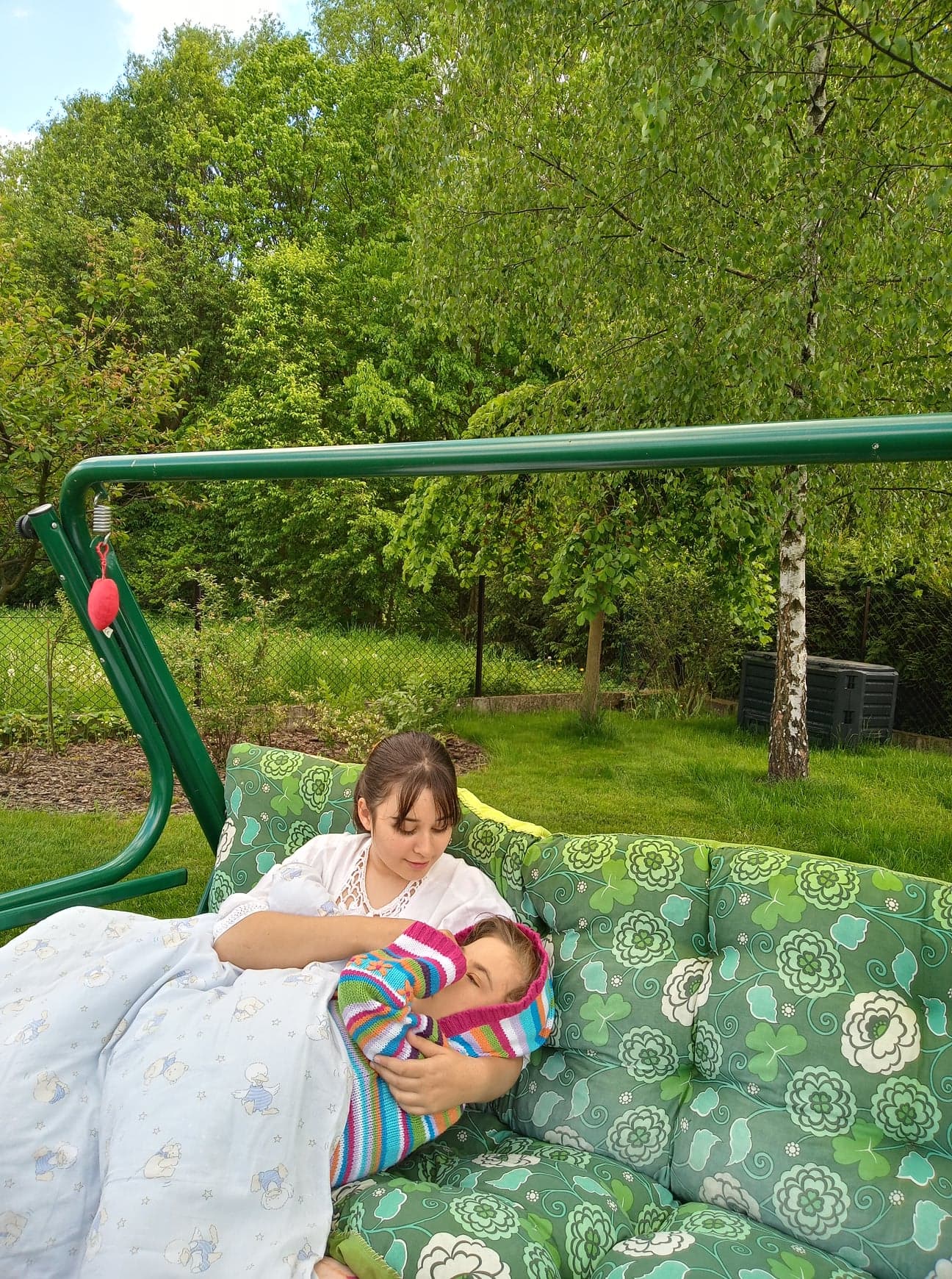 …do tulenia i głaskania… Dziewczynka – a właściwie już nastolatka – jest osobą niesamodzielną: nie siedzi, nie chodzi, wymaga całodobowej opieki… Nie mówi – ale jej bliscy nie mają wątpliwości, że mają z nią dobry kontakt. Misia – tak nazywa ją mama – najwięcej wyraża przy pomocy rąk: „Jak pytam: Kochasz mnie? – to ręce wyciąga, jak do przytulania…” – mówi pani Joanna i dodaje, że ten sam gest pojawia się – gdy córka usłyszy, że odwiedzą ją ulubione ciocie i wujkowie, za którymi stęskniła się… „Z kolei, gdy mówię, że babcia jest w niebie… to rękę kieruje ku górze…” Babcia odeszła niedawno, ale na pewno czuwa… w końcu była cały czas: „Przez czternaście lat, moja mama wspierała nas bardzo w opiece nad Misią… dzięki temu mogłam pracować…” Malwinka – tutaj znów nikt nie ma wątpliwości – odczuwała tę ogromną miłość babci… odczuwa wszystkie emocje, które ją otaczają. Widać, że słucha – dlatego mama i siostra chętnie dzielą się z nią swoimi przemyśleniami… Spokój Malwinki pomaga im w poukładaniu sobie w głowie wszystkich spraw: „Jest taką naszą terapeutką… ona właściwie nie płacze i nie denerwuje się…” Chyba, że coś ją boli – wtedy widać cierpienie na twarzy i zdarza się, że jęczy… Na szczęście, tak jest rzadziej – zazwyczaj jest pogodna i niezbyt absorbująca: „Jestem w stanie coś w domu zrobić: posprzątać, ugotować, wyprasować… a ona pobędzie przez tę chwilę sama…” – mówi mama dziewczynki i natychmiast zaznacza: że gdy córka uważa, że to już trwa jednak zbyt długo… to zaczyna wołać domowników po swojemu: „Ona jest przede wszystkim bardzo towarzyska… chce, żeby przy niej być, żeby do niej mówić. Lubi zasypiać przy kimś…” Choć piętnastolatka uwielbia siedzieć w ogrodzie, obserwować przyrodę i bawić się listkami – które delikatnie się kołyszą… to jednak potrzebuje obok drugiego człowieka. Widać po niej, że cieszy się – gdy odwiedza ją ktoś, kogo zna: rodzina, osoby z hospicjum… Rękami daje wyraz tej radości… Rękę kieruje też w stronę swojej siostry – gdy chce, żeby spędziła z nią trochę czasu…