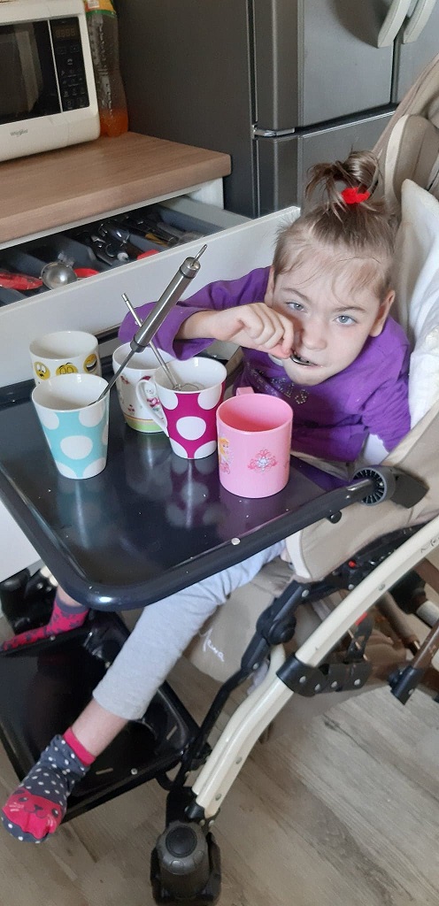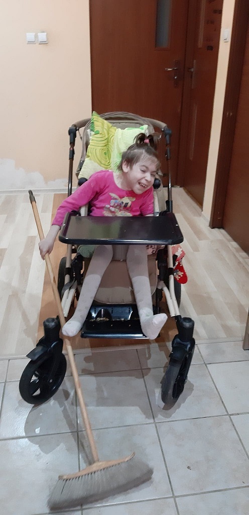 Ta potrzeba obecności kogoś tuż obok – jest oczywiście związana także z tym, że dziewczynka wymaga stałej opieki: choćby cewnikowania, co trzy godziny… “Bez pomocy może tylko zjeść ciastko, kanapkę… przy reszcie trzeba jej pomóc.” Pani Anna podkreśla jednak, że nie chce myśleć i mówić o tym, jak jest ciężko – woli cieszyć się z tego, co ma… co tu i teraz… każdą chwilą, każdą wspólnie spędzoną minutą: “Nie narzekam… są rodzice, którzy mają gorzej – przecież ja przynajmniej mam z nią kontakt… Nie każdy rodzic jest w takiej sytuacji. A to jest mój motorek napędowy… Ona daje radę – to ja też! Jedna bez drugiej, po prostu nie istnieje… To moje szczęście! Moje życie!”